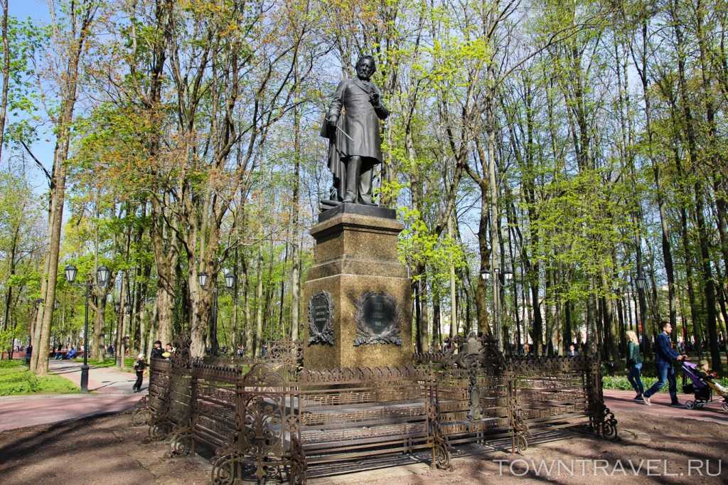 Расположившийся напротив филармонии памятник М. И. Глинке скульптора А. Р. фон Бока примечателен тем, что он первый не только в России, но и во всем мире. Был создан благодаря добровольным пожертвованиям. Композитор изображен с дирижёрской палочкой в руке, на гранях постамента бронзовые венки с надписями: «Глинке — Россия, 1885 год»; «М. И. Глинка родился 20 мая в селе Новоспасском Ельнинского уезда, скончался 3 февраля 1857 года в Берлине, погребен в С.-Петербурге в Александро-Невской лавре». На чугунной ограде памятника — нотный стан с отрывками из произведений композитора. Вокруг памятника установлены динамики из которых несколько раз в день звучат композиции М.И. Глинке.
