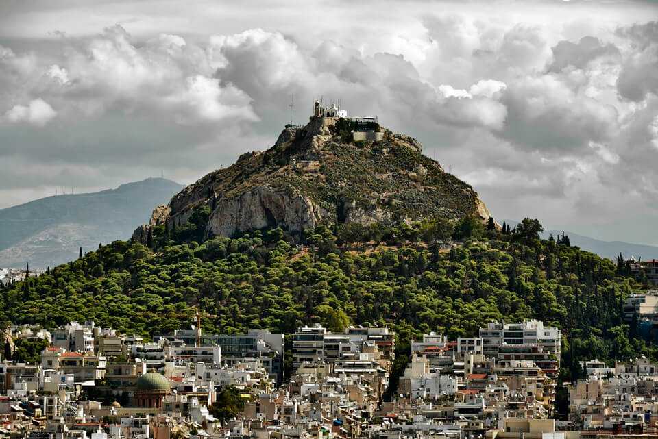 Название горы, устремляющейся к небесам среди центральных кварталов, переводится как «волчий холм». В античные времена в густых лесах, заросших кипарисами и соснами, обитали волчьи стаи, охранявшие святыню — храм Зевса, расположенный на самой вершине. В эпоху османского нашествия турки-завоевали выжгли все растения, покрывавшие пологие склоны. Восстановление флоры началось только в 1880 году.
