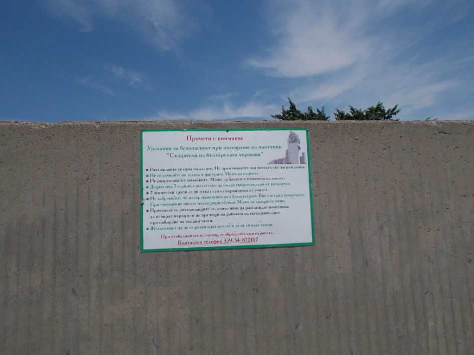 Город Шумен Болгария — тут же рядом с монументом находится природный парк, туристов сюда привозят на машинах, об этом свидетельствует табличка