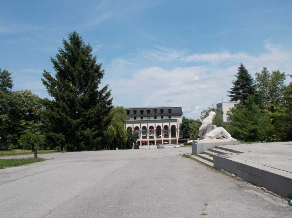 Город Шумен Болгария — здание театра и памятник сидячего человека