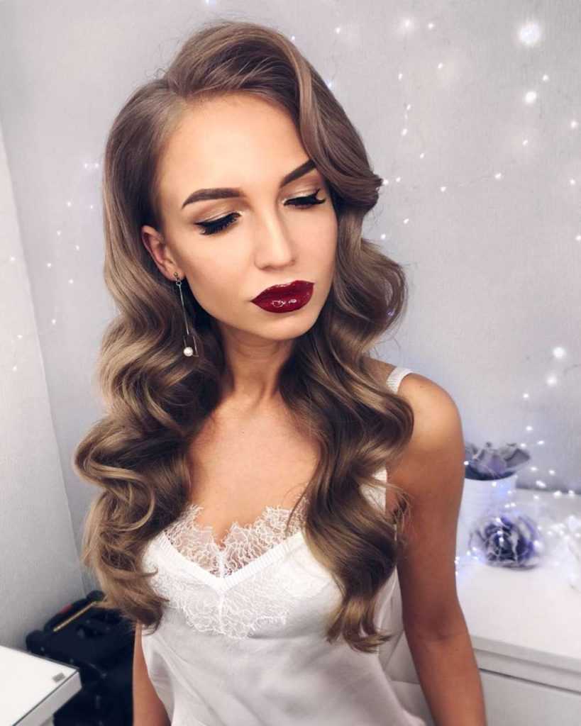 Прически на Новый год 2022 можно разбавить невидимками. Стильный вариант укладки на средние волосы — легкие волны с пробором на бок. Чтобы постоянно не заправлять локоны за ухо, достаточно зафиксировать их невидимками.