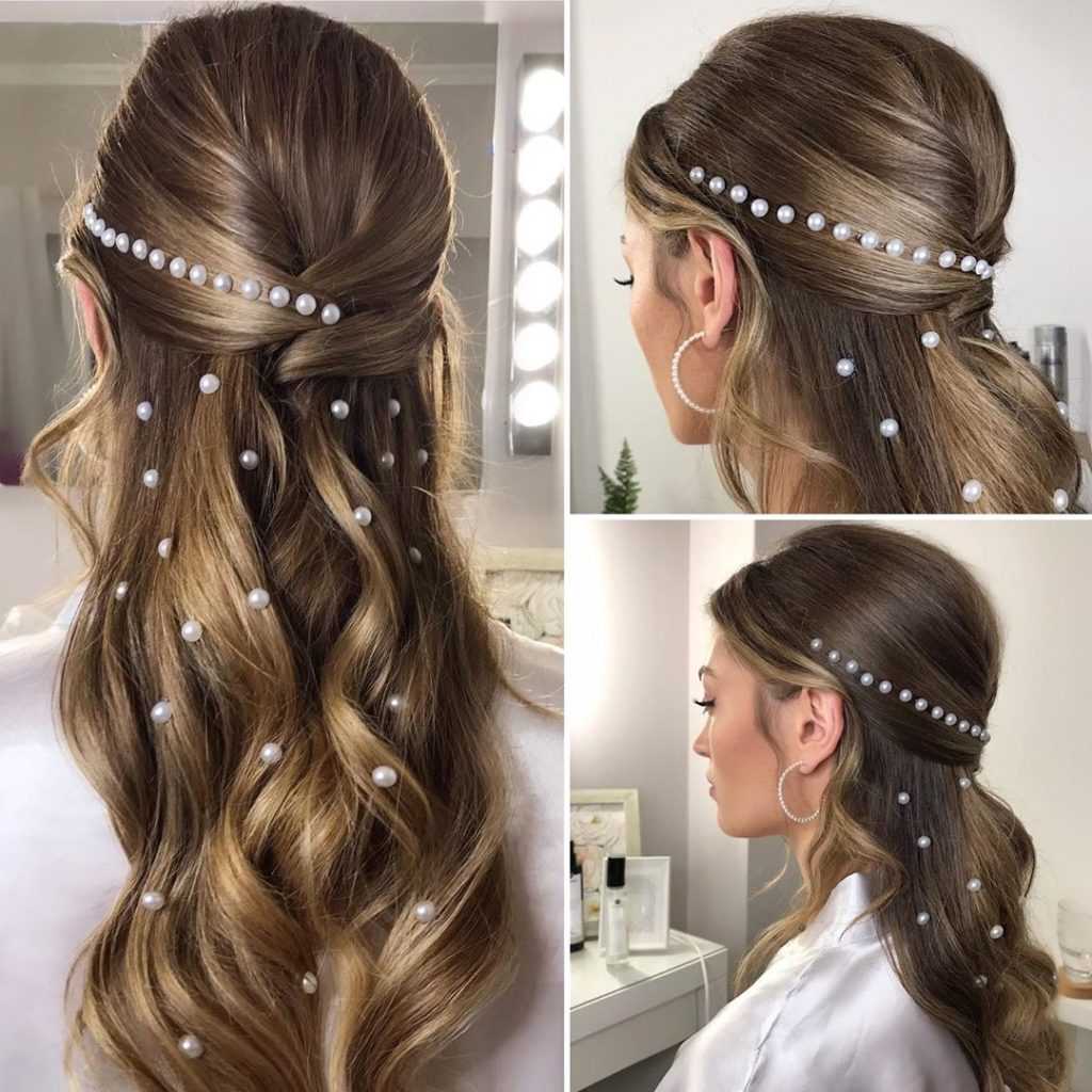 Этот аксессуар подходит для минималистичных укладок. Веточка крепится с помощью гребня, зажима или специальной петельки, через которую продевают прядь волос. Металлические проволоки могут быть украшены камнями, стразами, бусинами. Прическа выглядит женственно, делая образ более изящным.