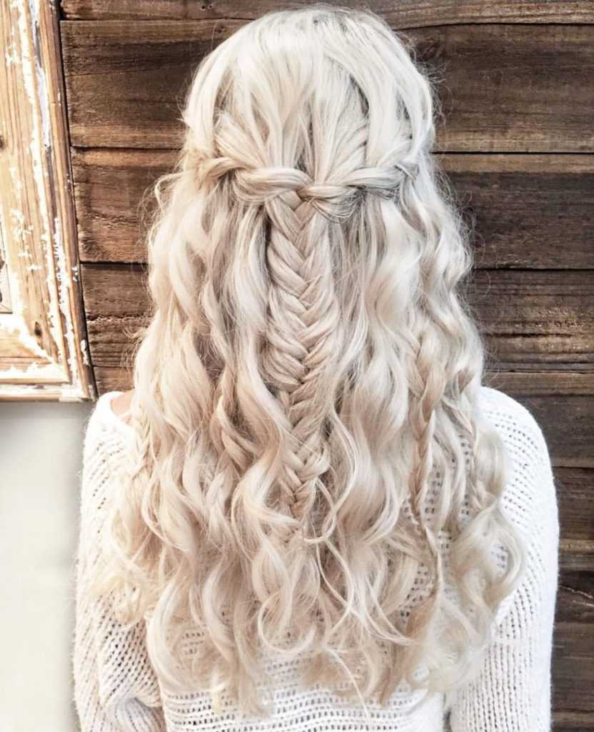 Косы можно украсить оригинальными аксессуарами. Идеально подойдет шарф в качестве декора. Полу коса выполняется в виде плетения с большим количеством распущенных прядей. Плетение начинается как голландская коса, а заканчивается рыбьем хвостом.