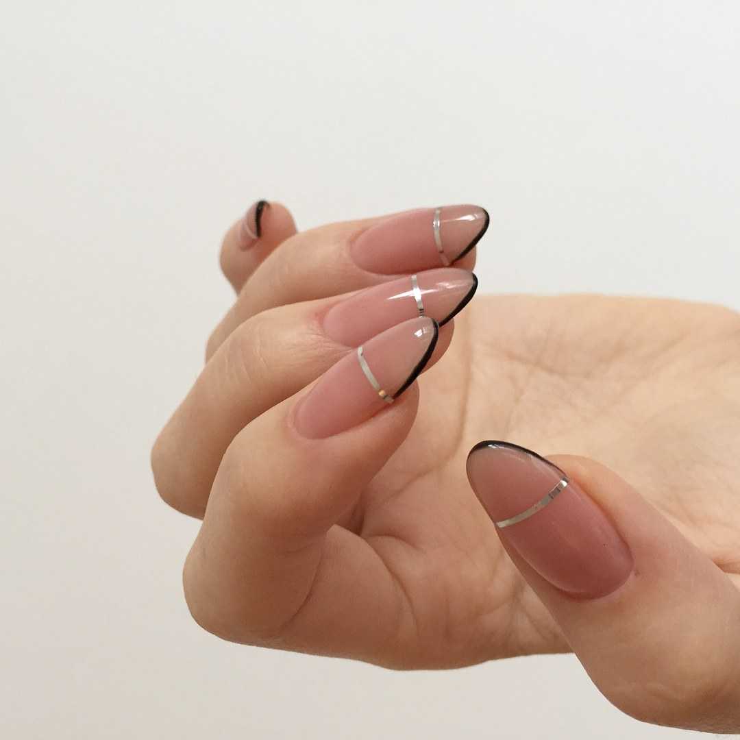 Особенно актуальной для коротких ногтей будет тонкая линия улыбки. За счет этого ногтевая пластина визуально кажется чуть более вытянутой. На самом деле такой вариант отлично смотрится на любой длине ногтей, поэтому смело экспериментируйте.