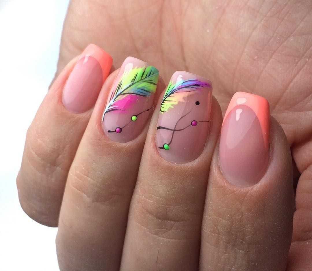 Для летнего маникюра характерны яркие сочные краски. Можно использовать любую технику nail art для создания уникального дизайна. Подойдет абстракция, цветочный принт, градиент, френч и другие стили. Используют пляжные мотивы, фруктовый микс.