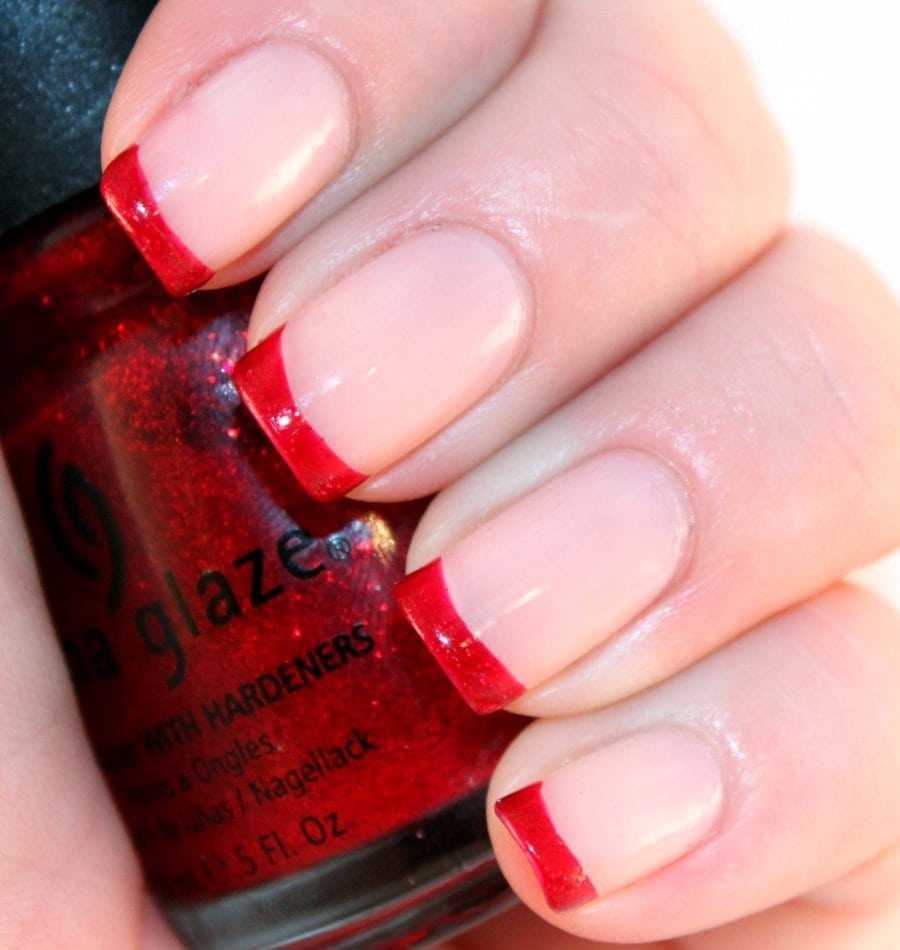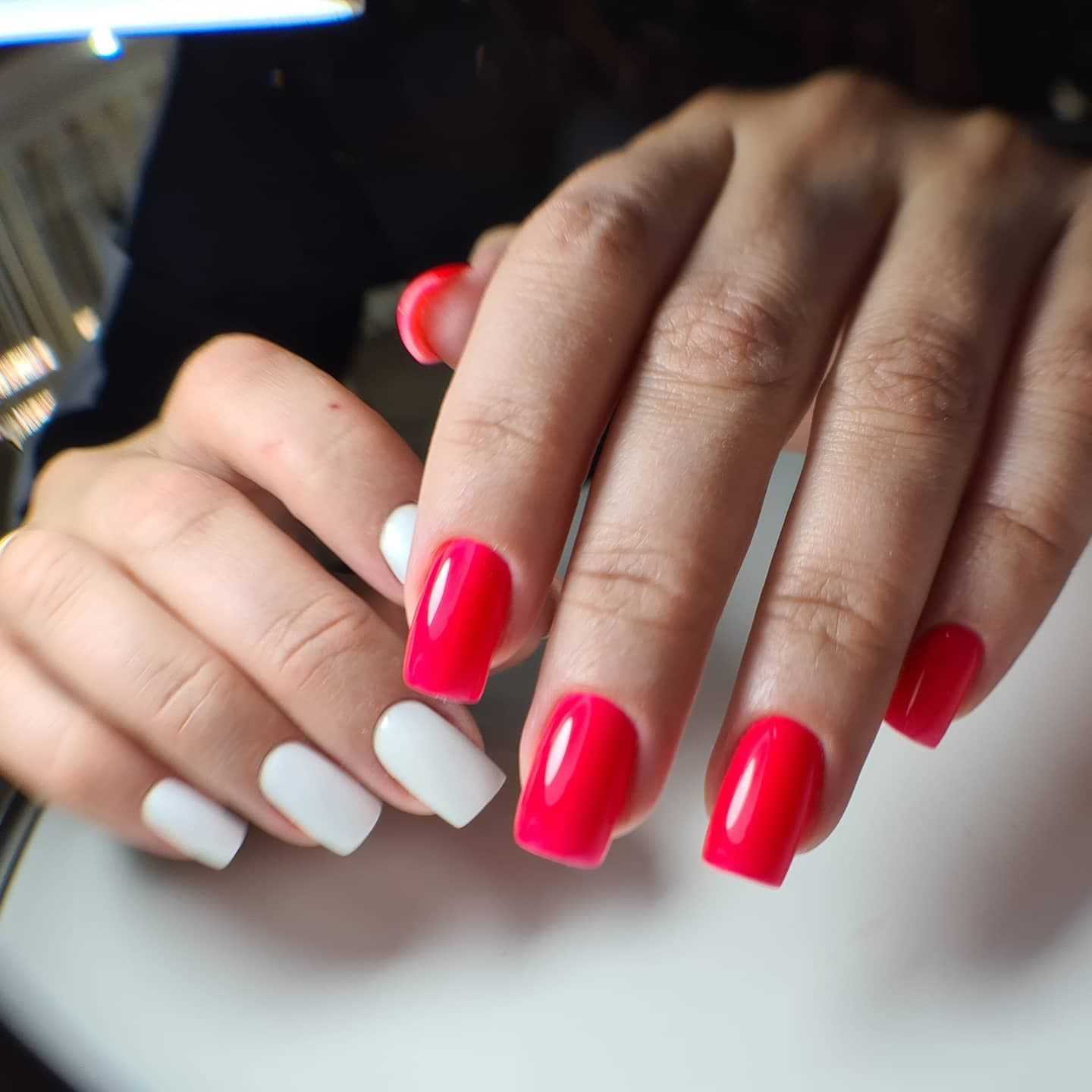 Сочетайте белые и красные цвета для создания обратного французского маникюра