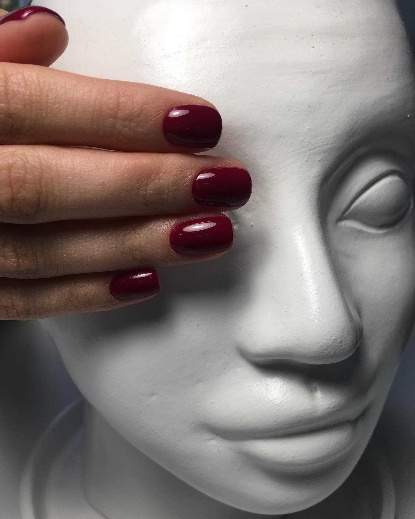 - лучше подбирать более тёмный оттенок красного, тогда блестящий лак будет выделяться;