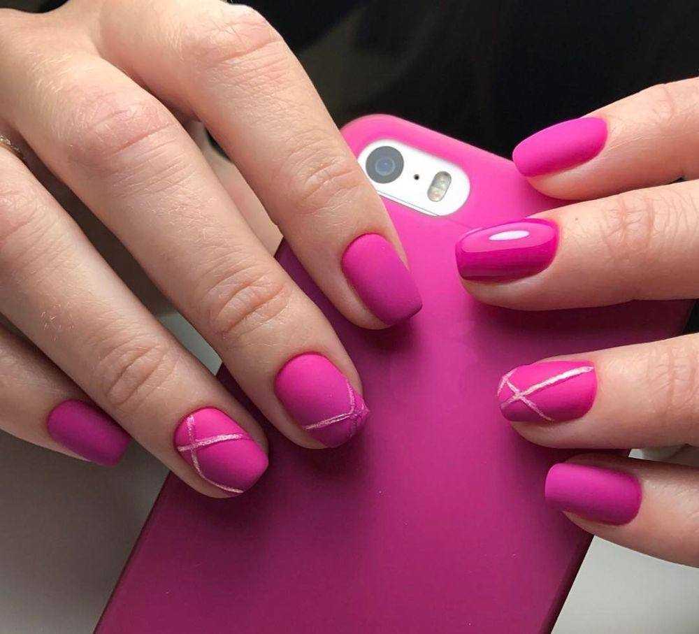 Те, кому надоел матовый маникюр в одном тоне, выбирают дизайн с разного рода рисунками. Самыми популярными в этом сезоне считаются геометрические фигуры: всевозможные ромбы, квадраты, линии разной толщины и направленности, абстрактные фигуры. Единственное правило – надо учитывать длину и форму ногтей и сочетать подходящие друг другу оттенки. Как правило, в случае с геометрией выбирают контрастные цвета.