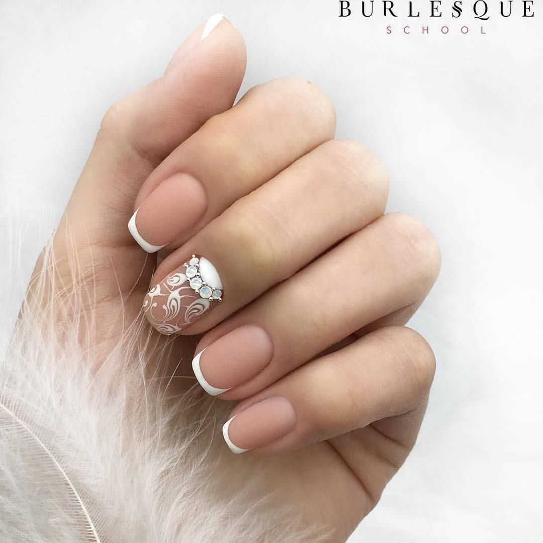 Модный матовый маникюр 2019 не обойдется без украшения стразами. Как правило, такой вариант дизайна выбирают для вечернего образа. Считается, что стразы на матовом фоне выглядят намного эффектней, чем на глянцевом. Но основное правило остается тем же – соблюдайте меру, чтобы маникюр не выглядел слишком вульгарно и пошло.