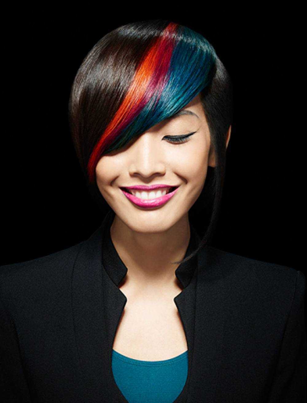 Для людей с темными волосами окрашивание челки связано с большими трудностями, чем для женщин со светлыми в обесцвечиваются (процедура может проходить дважды), а затем уже наносится выбранный колор. Для брюнеток подходят сливовые, фиолетовые и красные тона. Для девушек с рыжими волосами выбор цвета практически неограничен, но нужно все же сначала обесцветить локоны, и только потом приступать к нанесению.